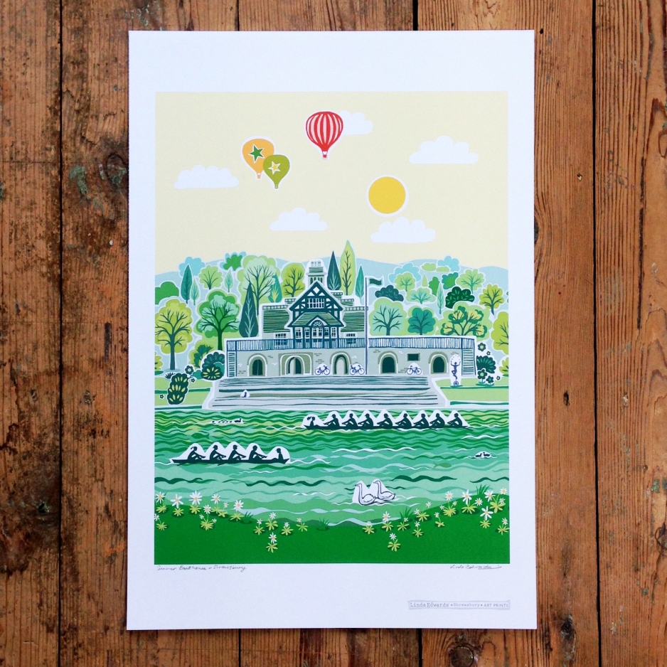 Pengwern Boathouse by Linda Edwards Paper size 420 x 594mm (A2) image size 380 x 525mm