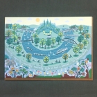 Folded card with illustration by Linda Edwards celebrating Shrewsbury in the loop of the River Severn.